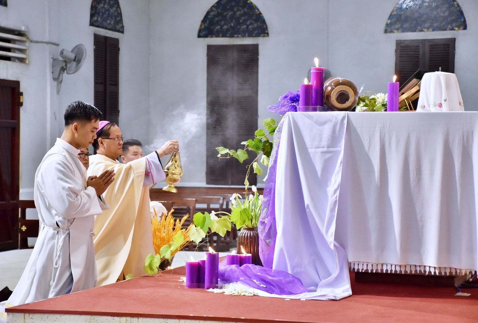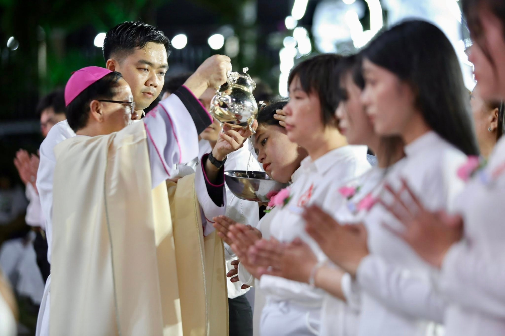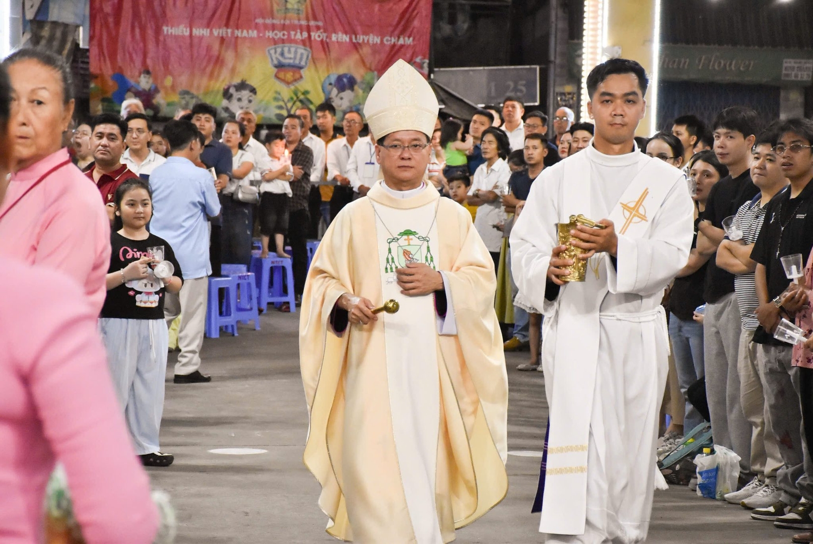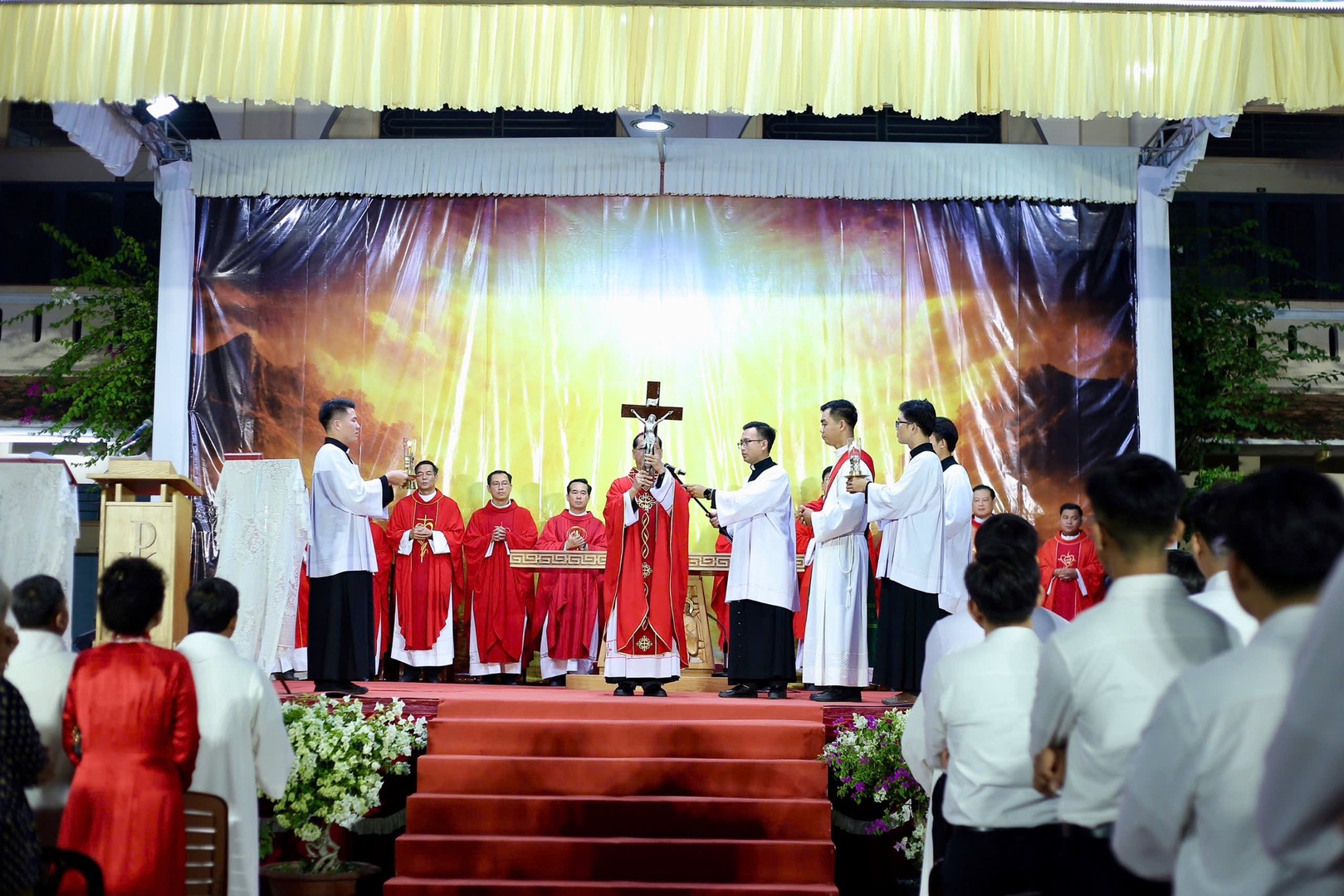 cử hành long trọng, mở đầu với nghi thức thắp nến Phục Sinh và công bố “Ánh