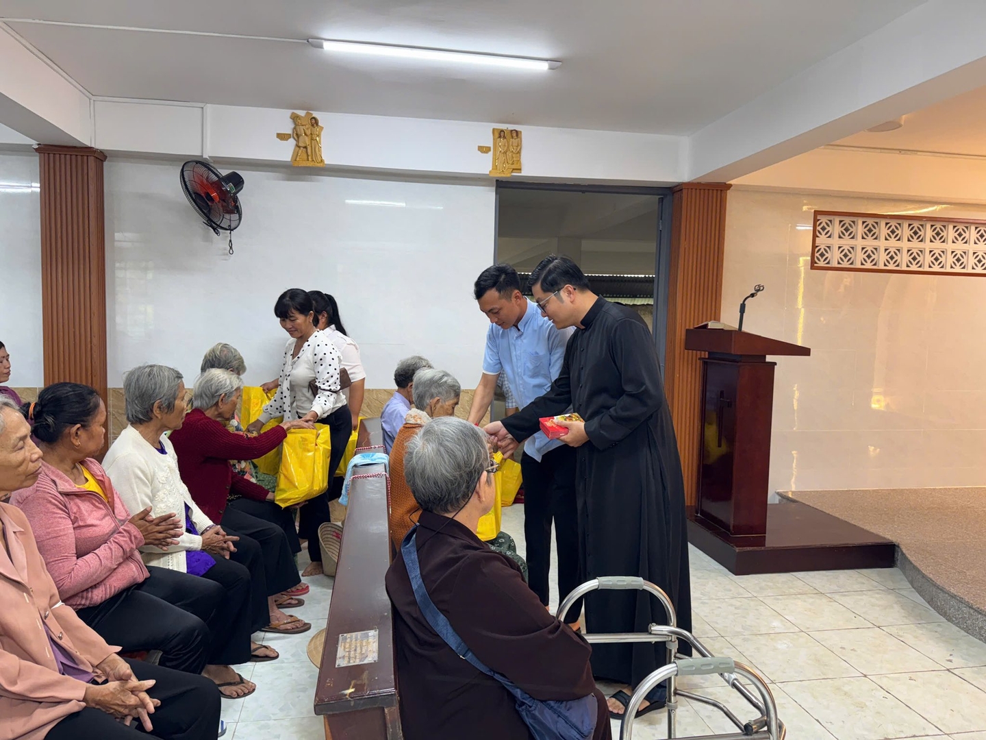 Sau Thánh lễ, với sự quảng đại cộng tác của quý ân nhân, Họ đạo đã trao gửi đến các bệnh nhân và quý ông bà cao niên những phần quà nhỏ, như lời chúc mừng năm mới chan chứa tình yêu thương và sự sẻ chia của cộng đoàn.