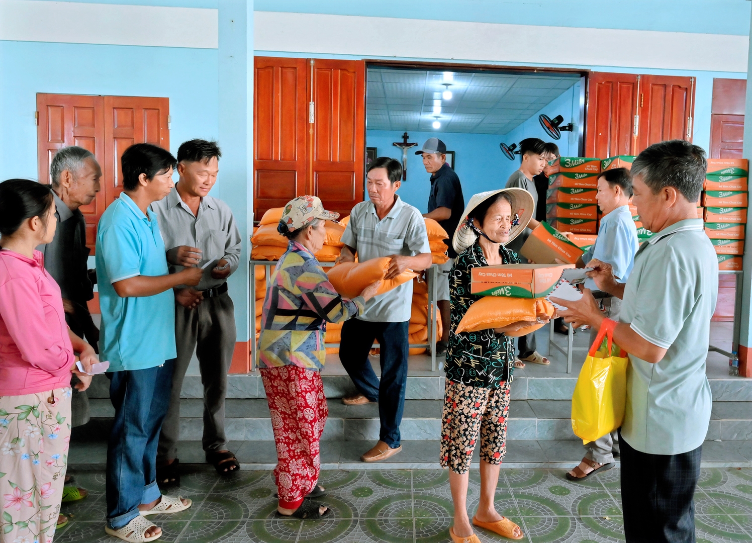 Mỗi phần quà được trao tặng bao gồm 01 bao gạo, 01 thùng mì và 01 bao thư trị giá 100.000 đồng. Tuy giá trị vật chất không lớn, nhưng mỗi phần quà đều chứa đựng tấm lòng yêu thương, sự quan tâm và tinh thần bác ái Kitô giáo của cộng đoàn giáo xứ. Đại diện Ban Bác Ái, ông cố Toản, đã trực tiếp trao tận tay những phần quà đến bà con.